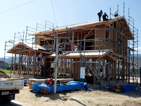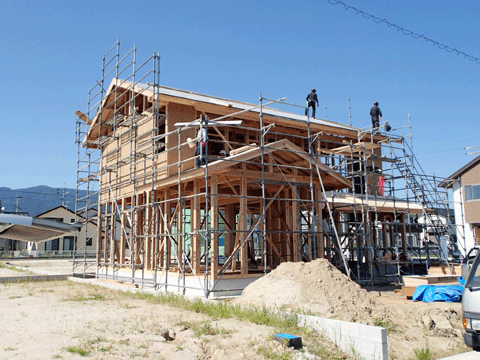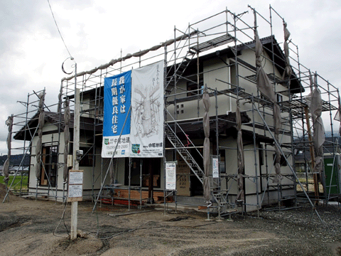 佐賀県武雄市の現場も足場が取れて 外観が見えるようになりました。 9月12日(土)・13日(日)に 完成見学会の予定です。