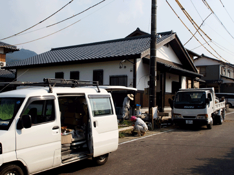 暑い中、業者の方にも頑張って 頂いております。