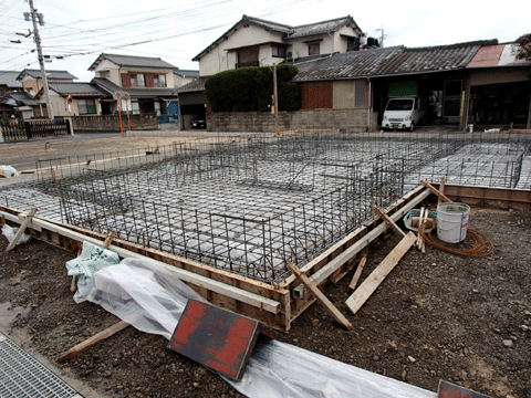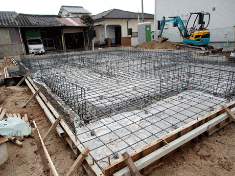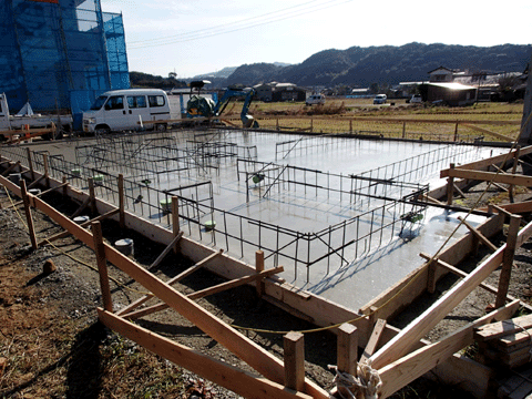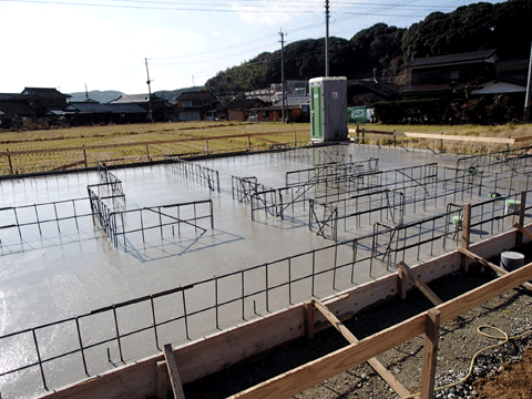 唐津の現場で基礎補強工事が終わり 住宅の基礎工事に掛かりました。 お正月明けに上棟となります。