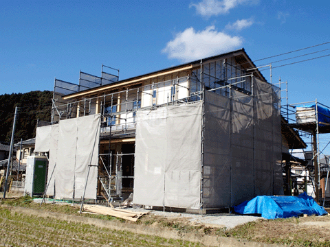 唐津市の現場もサッシや瓦工事が 終わり、今日から断熱工事に入ります。 吹付断熱工事が終われば、現場も少しは 寒さが凌げます。