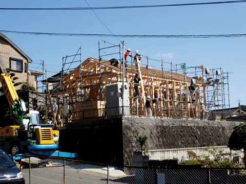 10月1日より基礎補強工事が 始まり、月末には上棟の予定です。