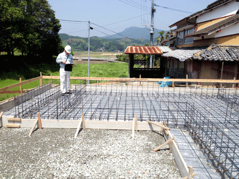 先日、武雄市東川登町の現場で 配筋検査がありました。