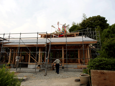 先週末、武雄市の現場で上棟が ありました。 51坪の平屋建てです。