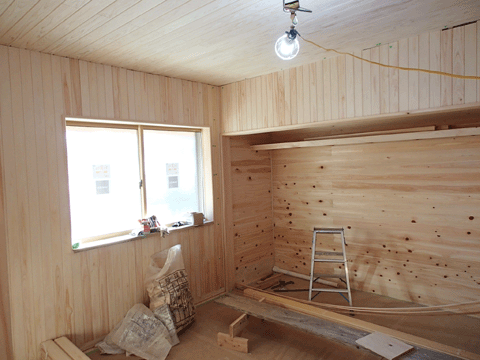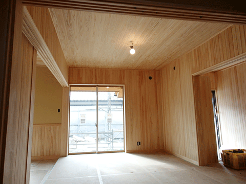 こちらは、奥様のご希望で 部屋の壁は檜板を貼りました。