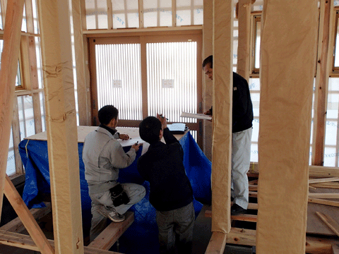 先日、コンセントやエアコン等の 打ち合わせが終わりましたので 来週より吹付け断熱工事が始まります。
