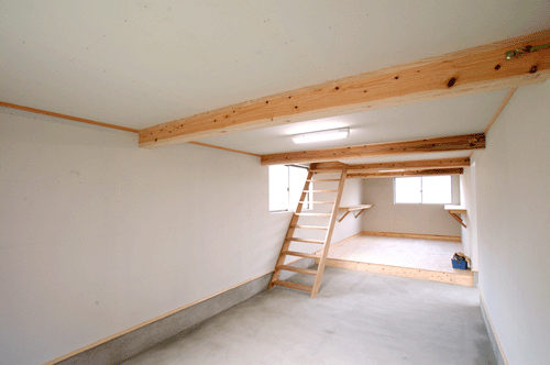 車は、4台止める事が出来、 裏と中二階に収納スペースを 設けました。