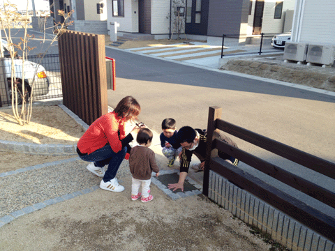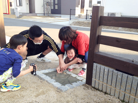 先日、2年前にお引渡しを 致しましたお客様宅の庭に 【家族の手形】を作成しました。