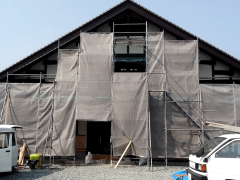 内部工事も順調に 進み、外部工事は、 塗装と漆喰工事 に入りました。