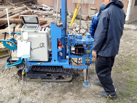 佐賀県小城市の現場では、 解体工事も終わり、地盤の調査に 入りました。