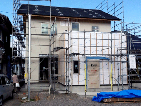 今月で大工工事も終わり 太陽光発電が乗り 足場が外されます。