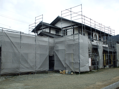 佐賀県武雄市の現場をUPします。 今日で外壁の漆喰塗装が終わる予定です。