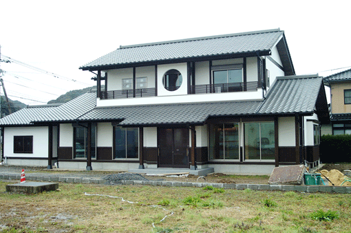 外観写真を見て頂くと 大きな住まいに見えますが、 住居と倉庫を繋げていますので どっしりとした家に 見えると思います。