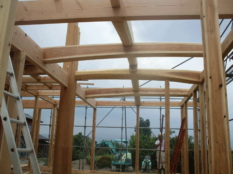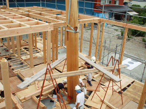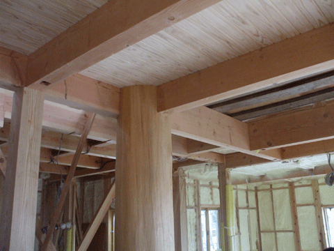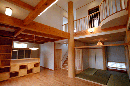 こちらのお宅は、 LDKを吹抜けにして、 大きな梁を組んでいます。