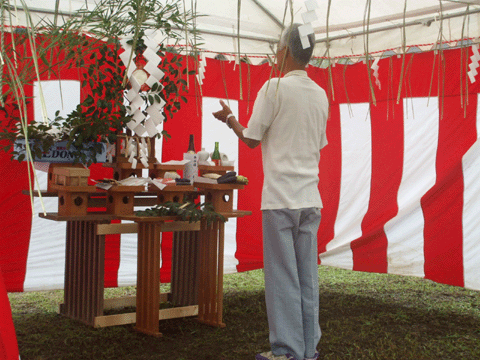夏の地鎮祭は、ネクタイまで 汗でビッショリ