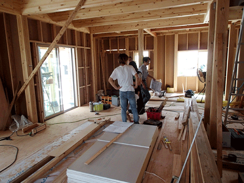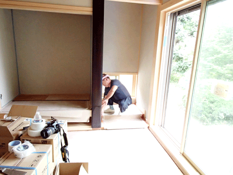 大工工事も終わり、左官が 珪藻土塗りに入りました。