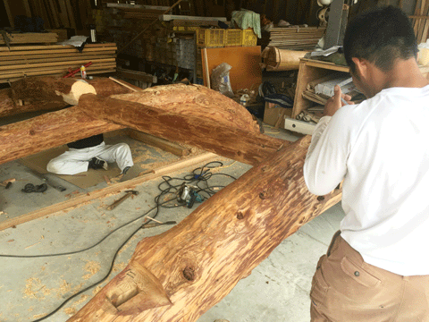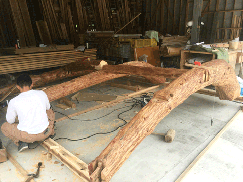 その梁を新築住宅に使う為に 加工中の写真を添付します。