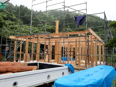 土曜日は、雨がよく降りました。 その雨の中、神埼郡吉野ヶ里町の 現場では上棟がありました。