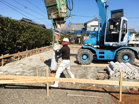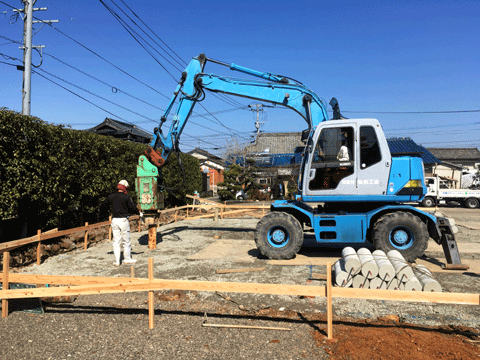 佐賀県杵島郡白石町の現場では 基礎補強工事が始まりました。