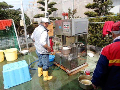 餅つきの機械も本格的な 杵つきタイプのでした。