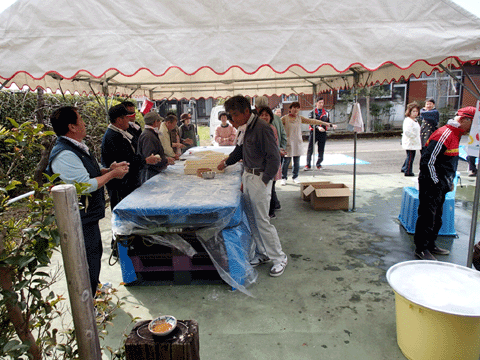 朝からご近所の方々が総出で 餅撒き用の準備をなさっていました。