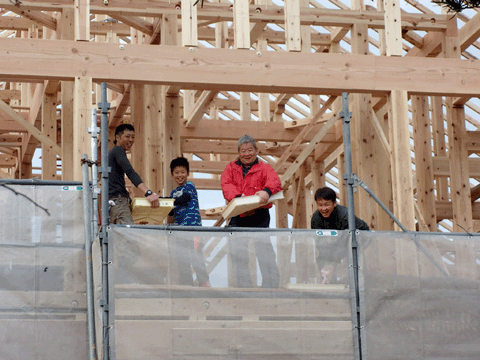 現場も無事に上棟が終わり H様ご家族には、大変御世話になりました。m(_)m 竣工まで事故等の無いよう気を付けて 工事を進めて行きますので、今後とも 宜しくお願い致します。m(_)m